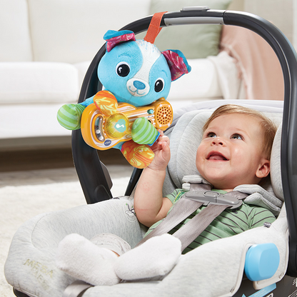 Inclui alça para fixação em carrinhos de bebê e assentos de carro para brincadeiras em movimento. Apresenta voz britânica para fácil reconhecimento.