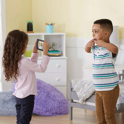 Usando uma conexão sem fio, seu filho pode trocar textos ou gravar e enviar pequenas mensagens de vídeo com segurança para a família e amigos através do aplicativo KidiCom Chat. Tire fotos e vídeos, ouça música e assista aos programas favoritos! As crianças também podem navegar com segurança na Internet como e quando quiser com controles de tempo de tela aprimorados. Inclui jogos integrados, filtros de fotos de rastreamento facial e efeitos para criar selfies legais e um jogo de captura de monstros de realidade aumentada!