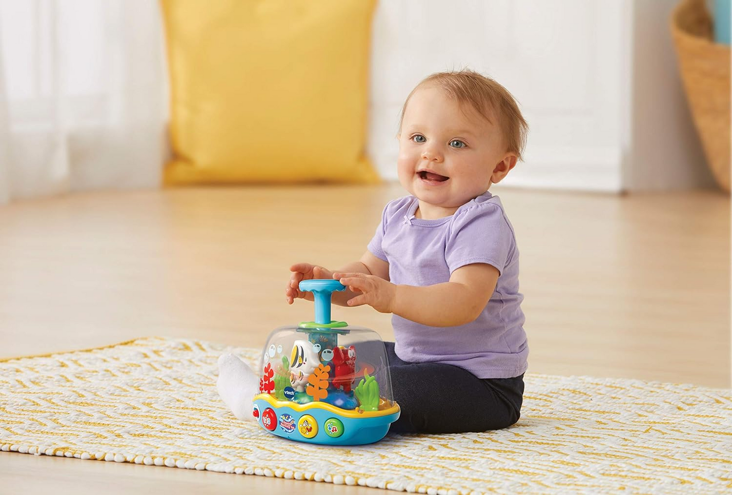 - SEASIDE SPINNING TOP: Mergulhe no aprendizado divertido com o Seaside Spinning Top da VTech! Projetado com um êmbolo robusto que gira os animais marinhos, os bebês serão apresentados a um caranguejo, peixe anjo e peixe estrela!