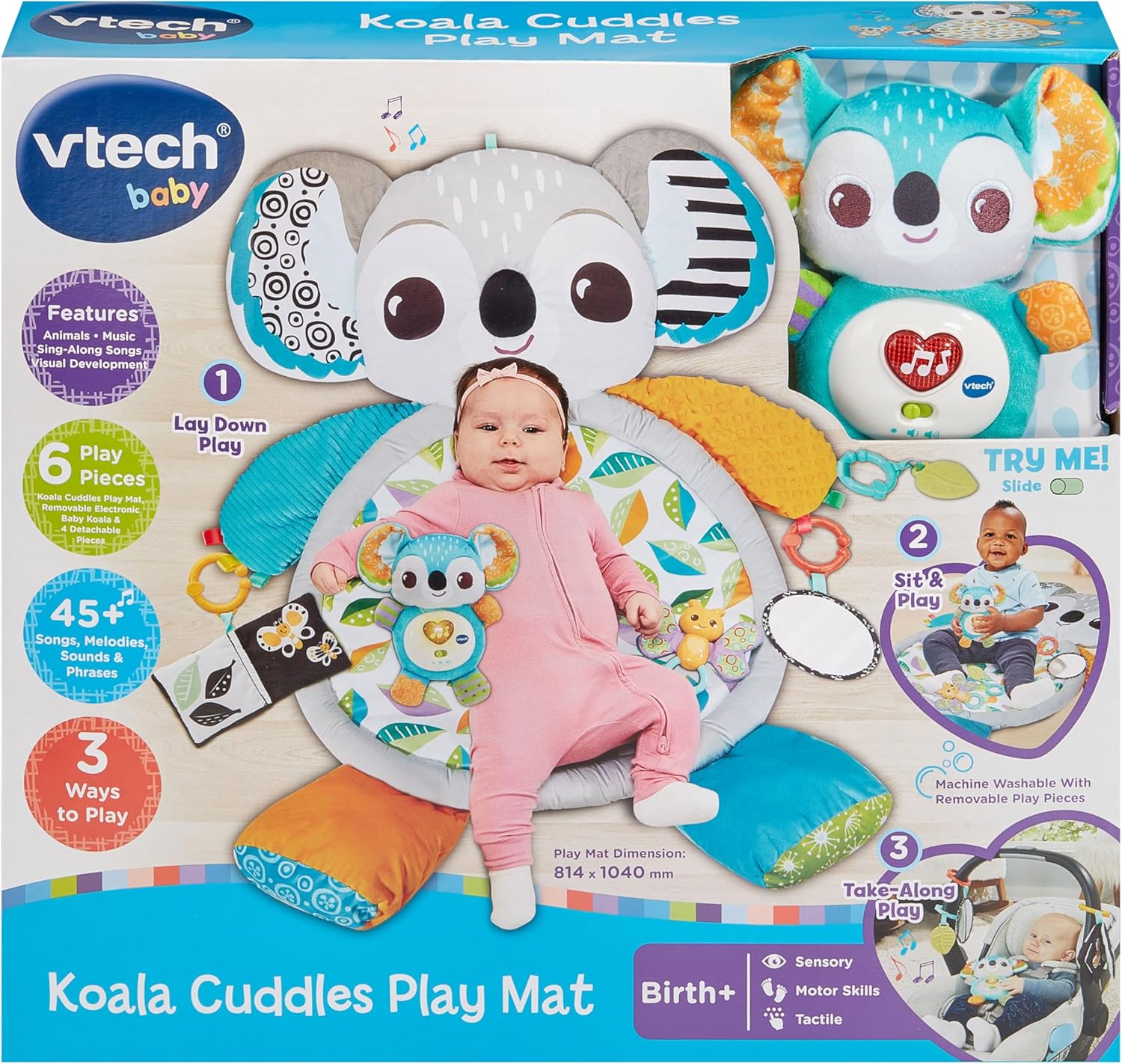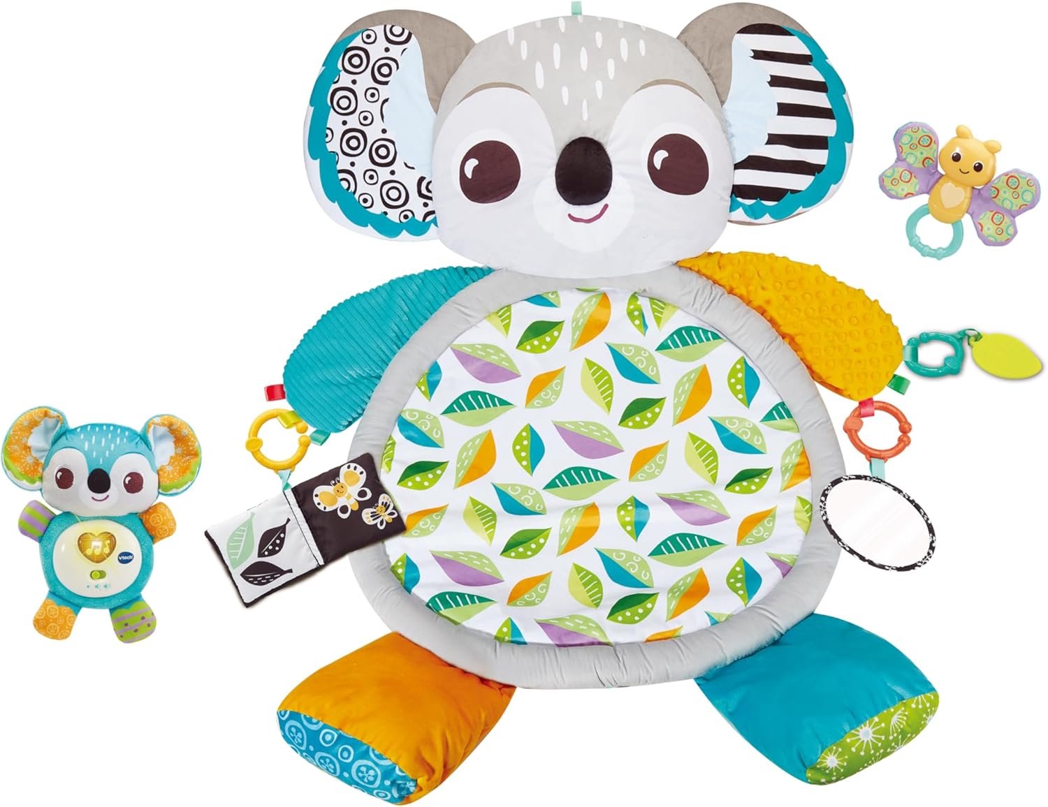 VTech Tapete de brincar Baby Koala Cuddles, tapete de brincar macio para brincadeiras sensoriais, 5 acessórios incluindo mordedor e chocalho, efeitos sonoros e frases divertidas, brinquedo para bebês de 0, 3, 6, 12 meses ou mais, versão em inglês