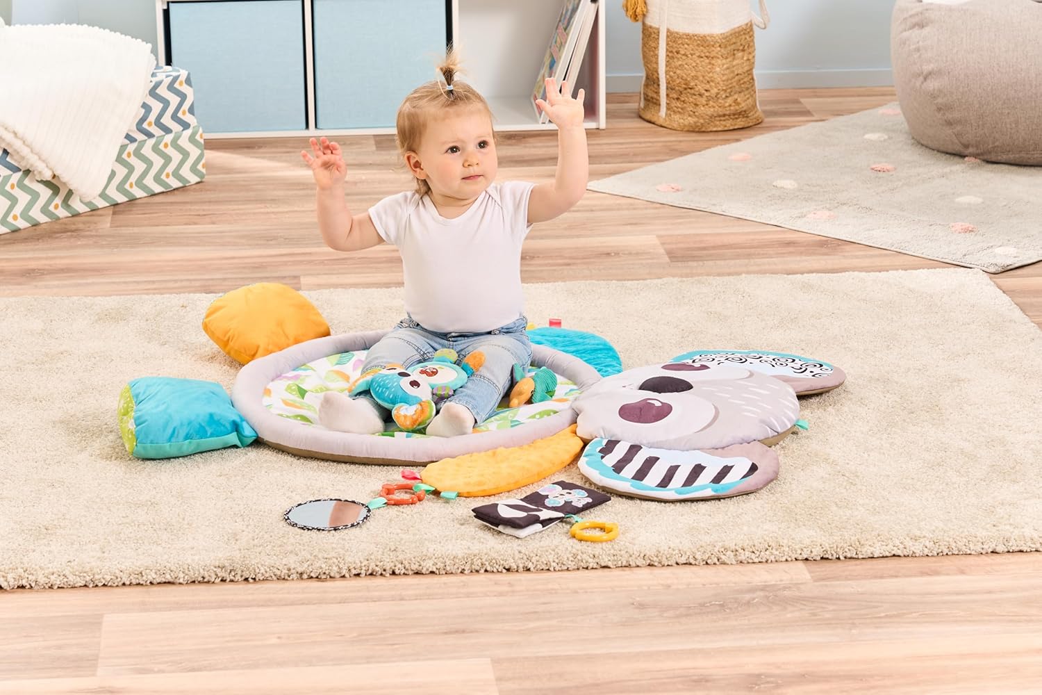 • EXPERIÊNCIA SENSORIAL ENVOLVENTE: Encante seu bebê com nosso adorável tapete de brincadeira Koala, projetado para incentivar a brincadeira sensorial por meio de estimulação visual e vários tecidos texturizados, incluindo veludo cotelê, lã com pompom e fitas macias e sedosas.