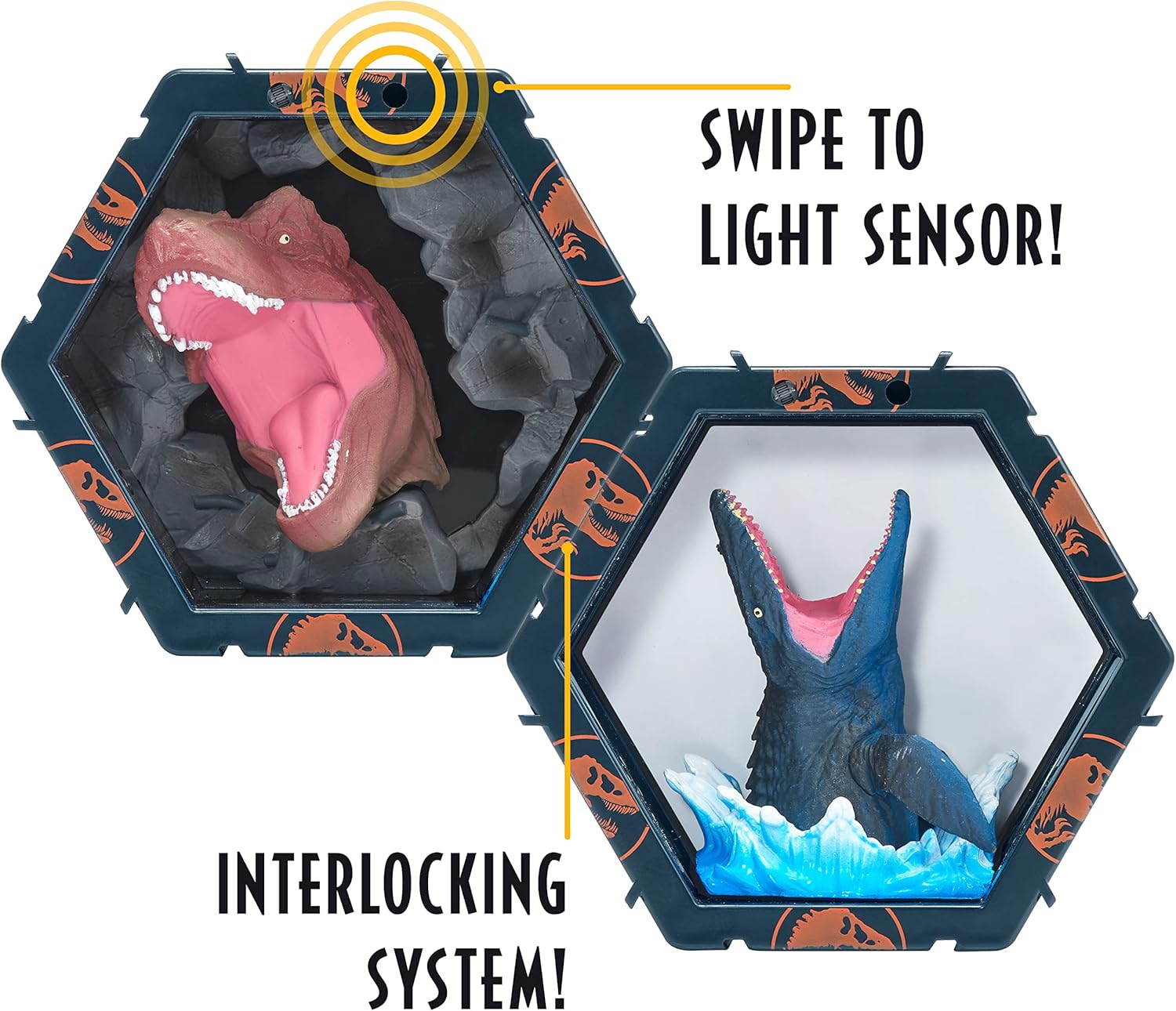 - MONTE SUA PRÓPRIA COLEÇÃO - Conecte-se a outros personagens WOW! PODS em segundos. Existem 4 WOW! PODS do Jurassic World. PODS para colecionar: Azul, Tricerátropes, Mosassauro e Tiranossauro Rex. Monte a coleção completa de dinossauros e veja-os iluminar o ambiente!