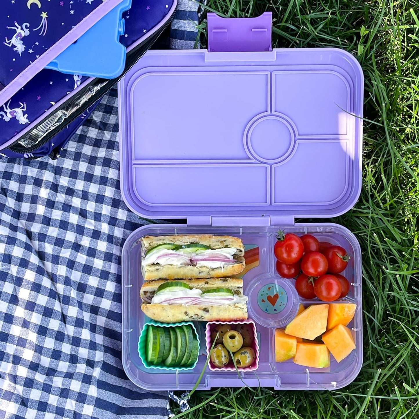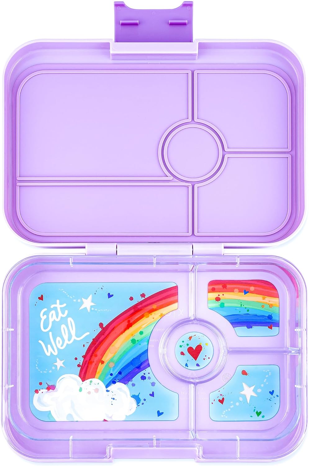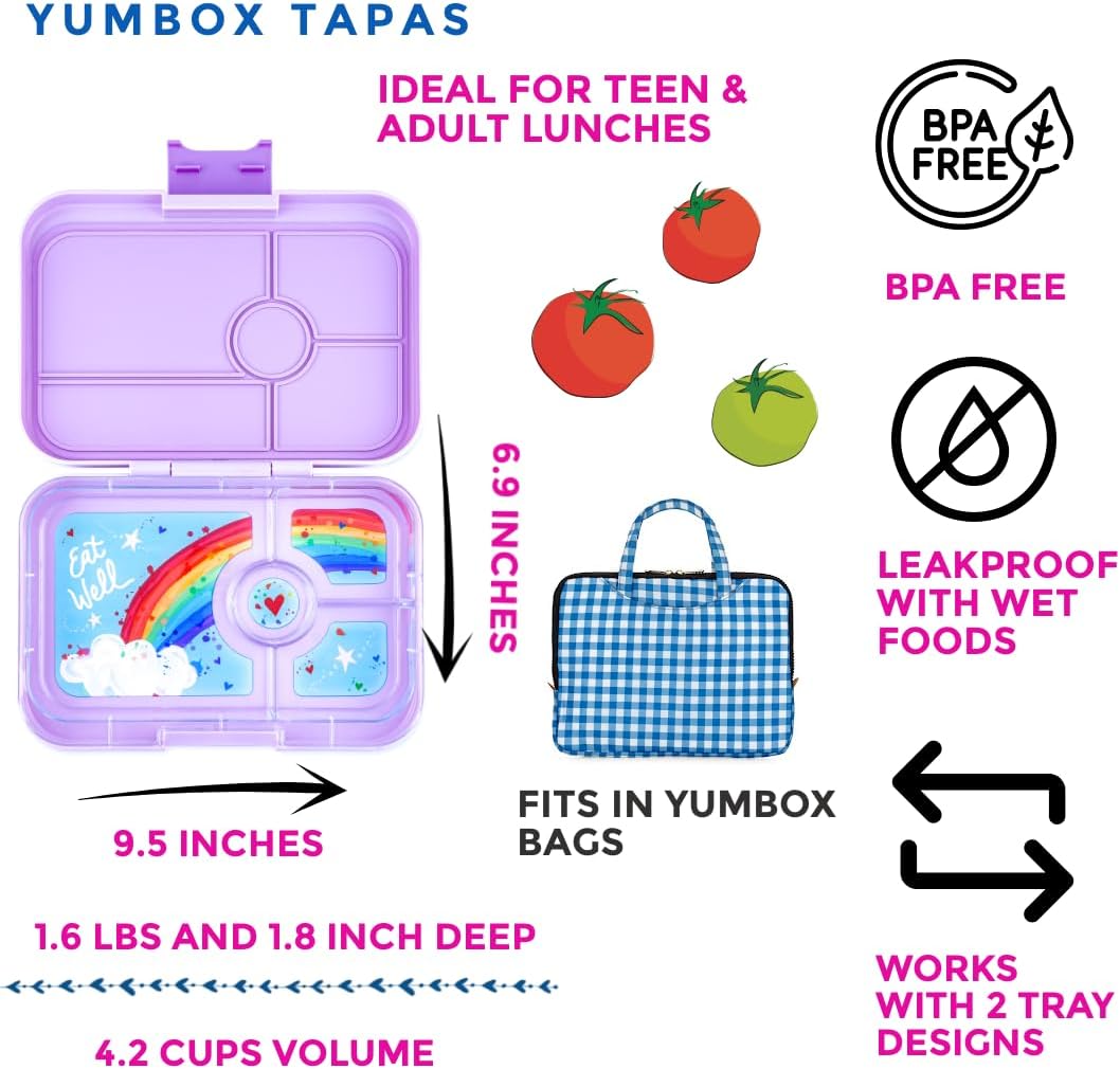 yumbox Tapas tamanho maior - lancheira Bento à prova de vazamentos de 4 compartimentos para pré-adolescentes, adolescentes e adultos (roxo Sevilha com bandeja arco-íris)