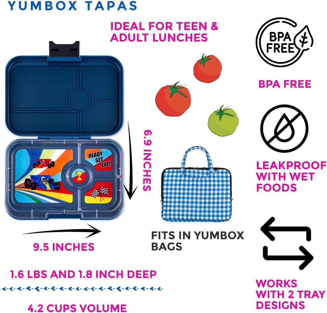 - ALMOÇO SAUDÁVEL: Yumbox torna muito fácil deixar seus almoços embalados apetitosos, coloridos e organizados. Coloque uma bolsa de gelo (não incluída) fora do Yumbox para manter o conteúdo fresco. Tanto o Yumbox quanto a bolsa de gelo devem ser colocados em uma bolsa isolada (não incluída). Recomendamos a manga isolada Yumbox Poche, pois são projetadas sob medida para caber em Yumbox Tapas.