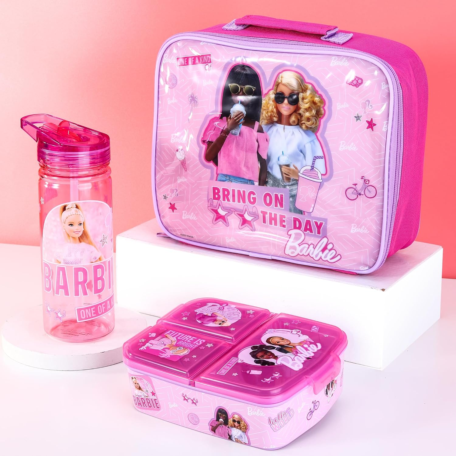 Zawadi Global Conjunto de lancheira infantil Barbie Kids - lancheira isolada, lancheira com vários compartimentos e garrafa de água de 580 ml - conjunto de comida para almoço de viagem escolar,
