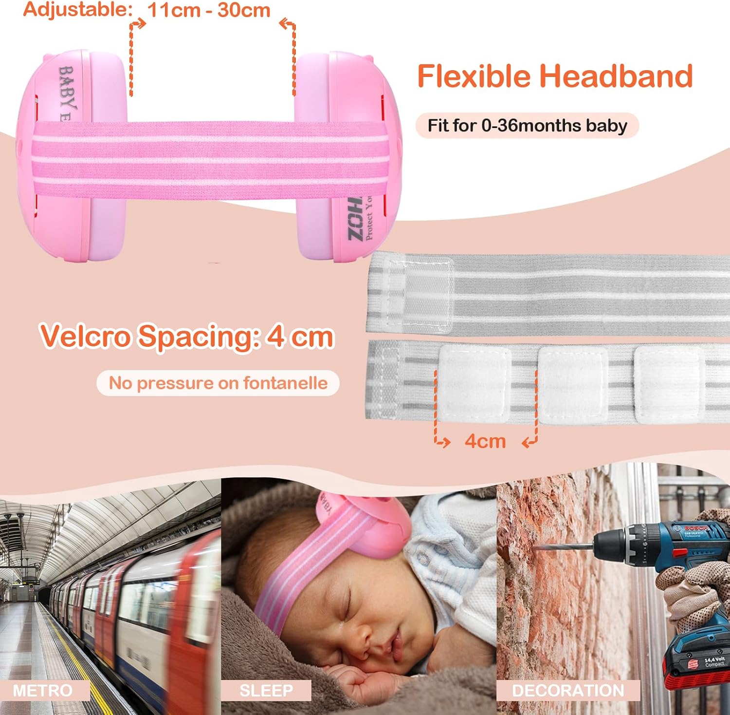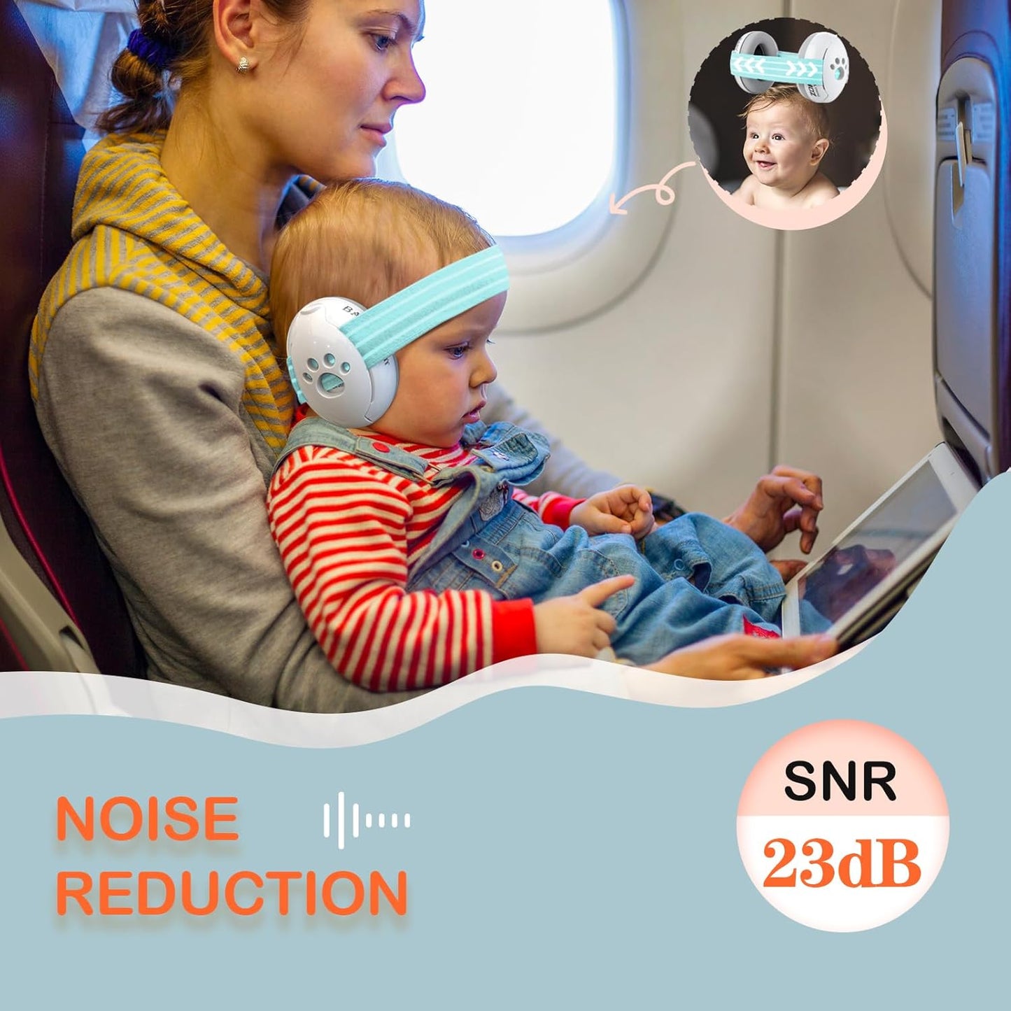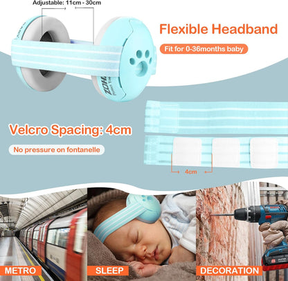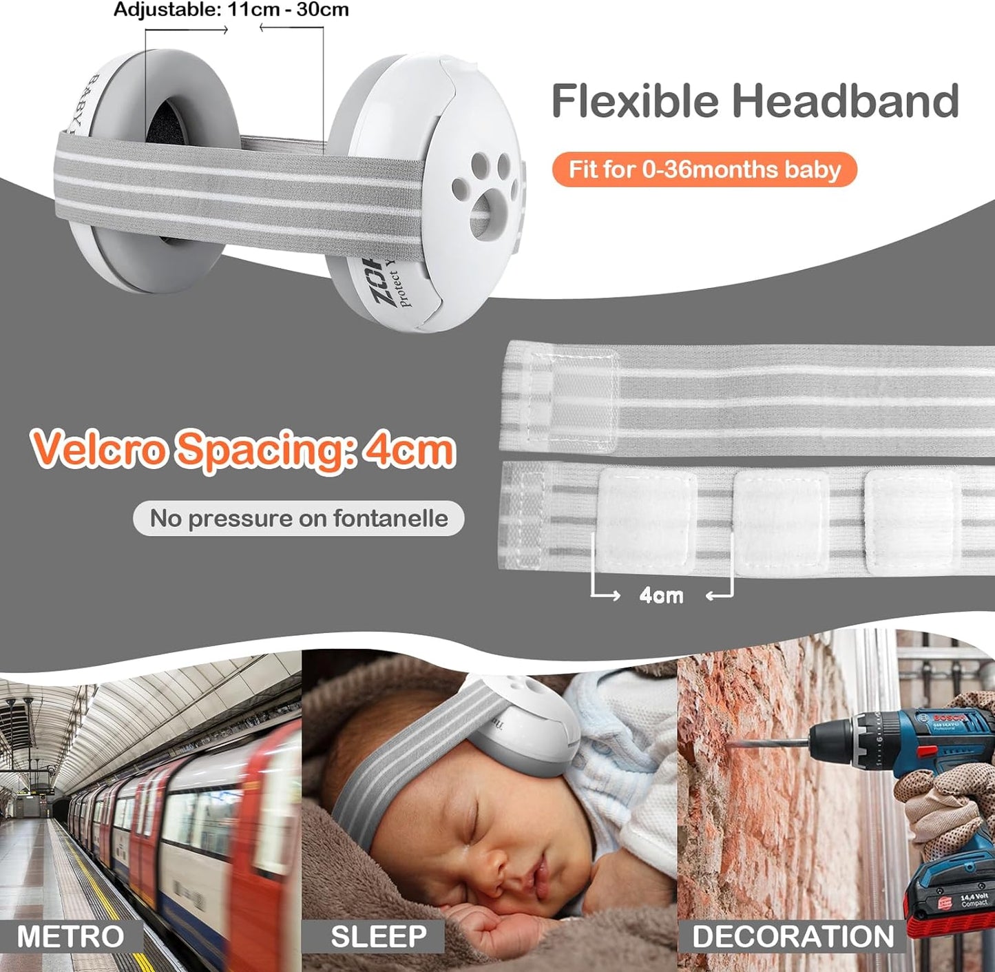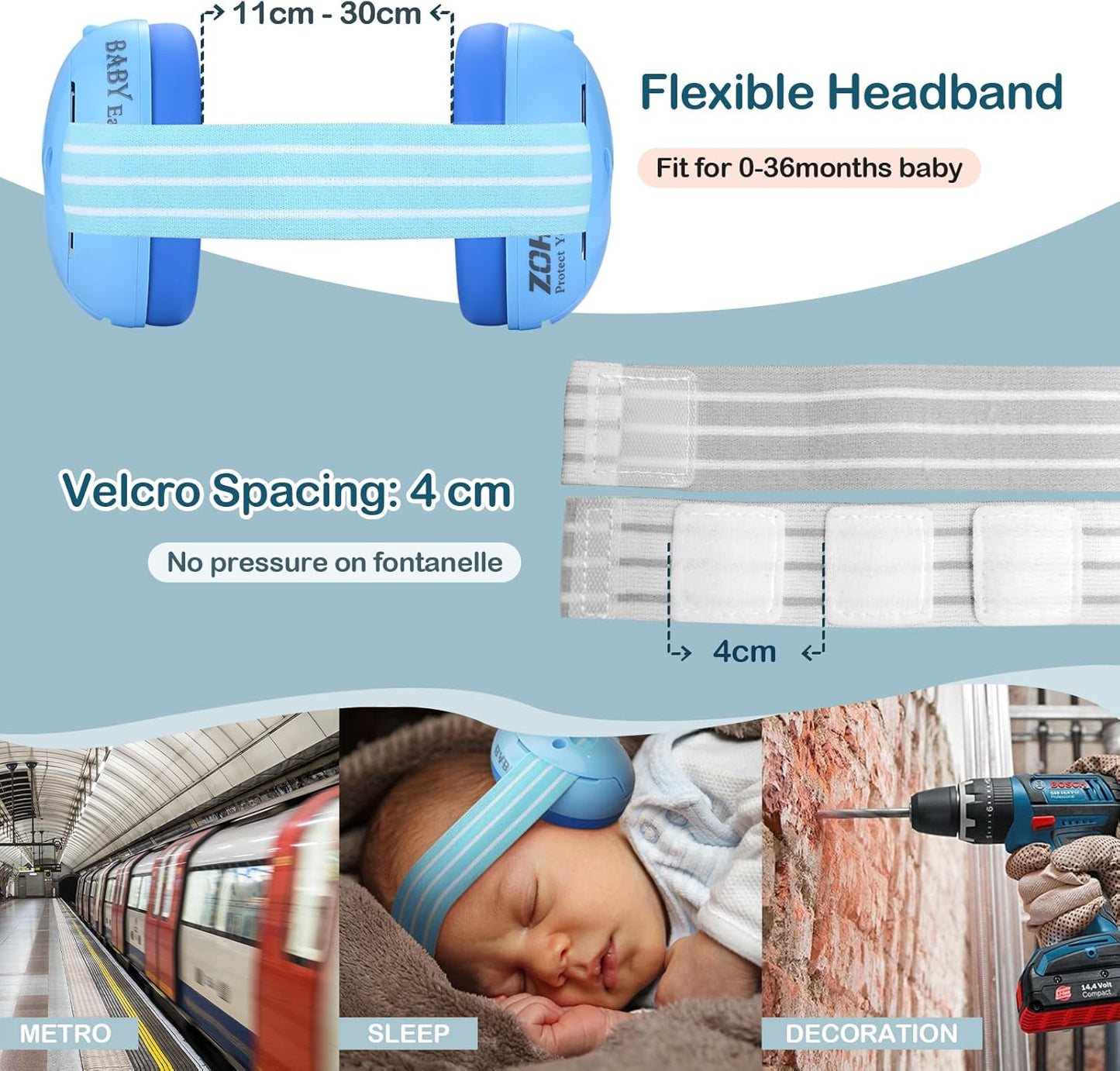 ZOHAN Protetores de ouvido para bebês meninos de 0 a 36 meses Autismo com cancelamento de ruído Fones de ouvido para fogos de artifício de avião dormindo, proteção auditiva para crianças, faixa de cabeça macia ajustável,
