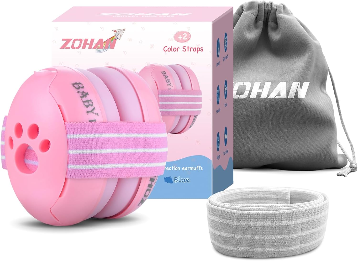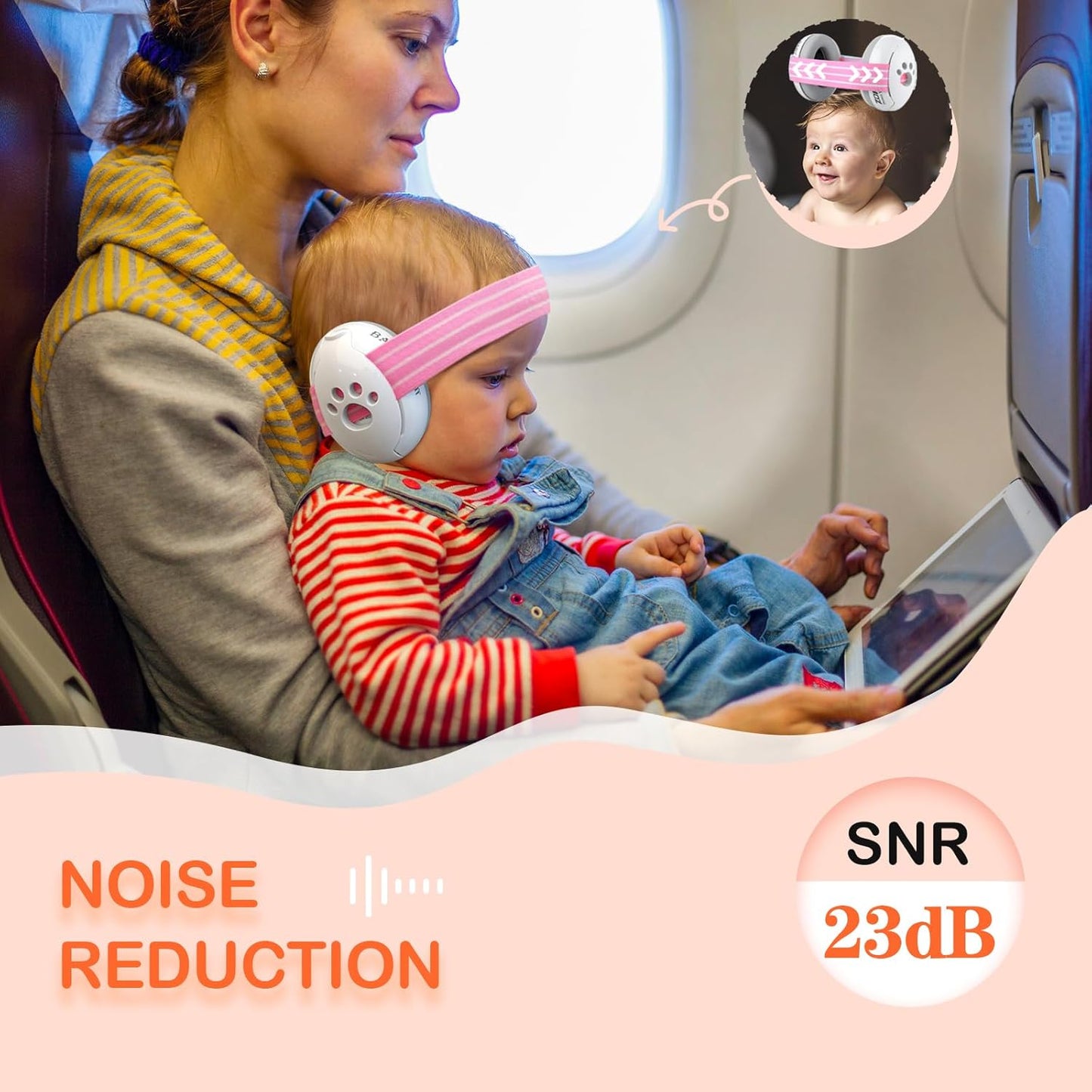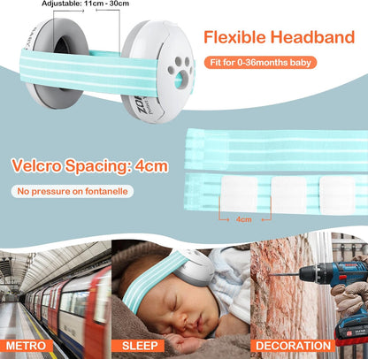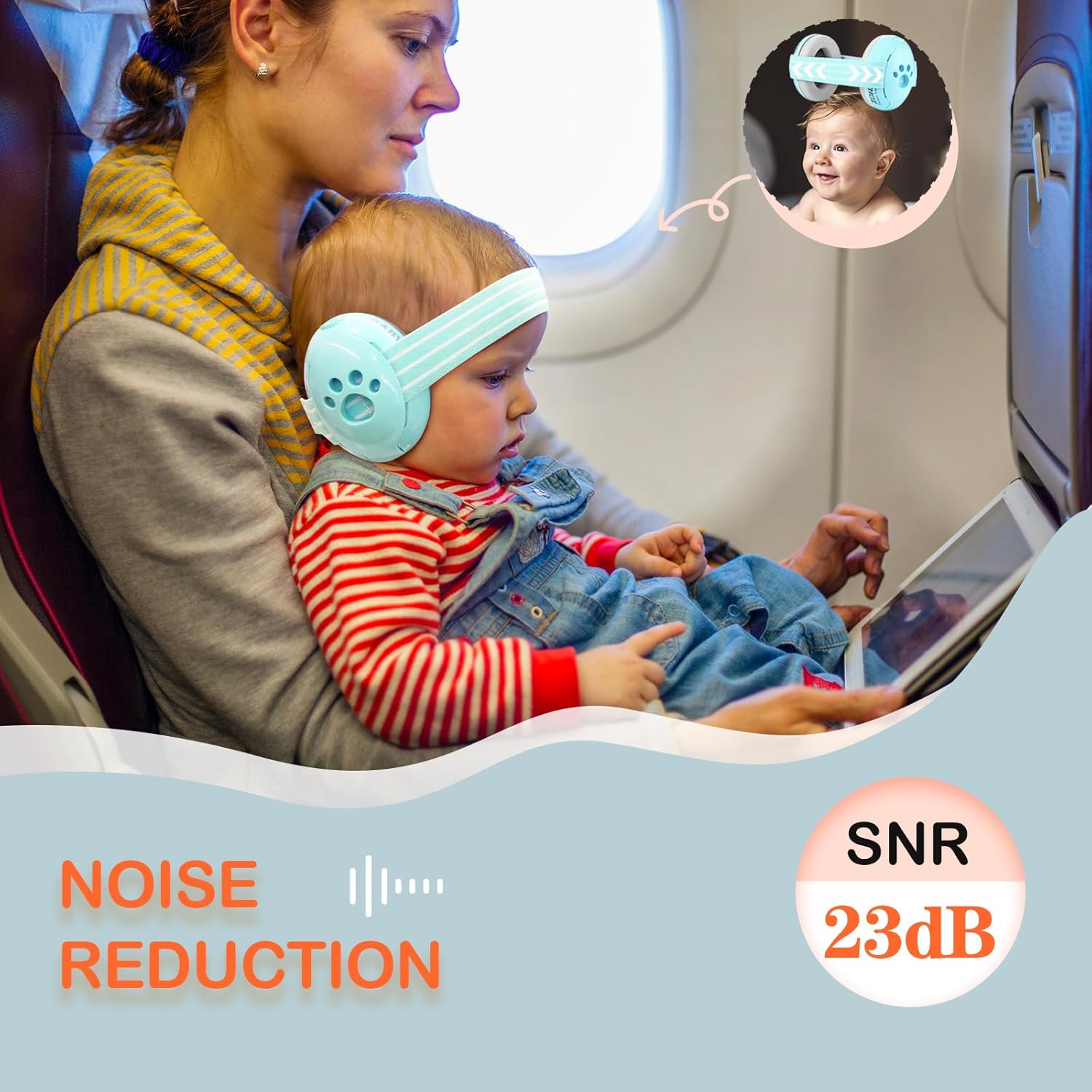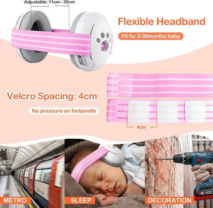 ZOHAN Protetores de ouvido para bebês meninos de 0 a 36 meses Autismo com cancelamento de ruído Fones de ouvido para fogos de artifício de avião dormindo, proteção auditiva para crianças, faixa de cabeça macia ajustável,